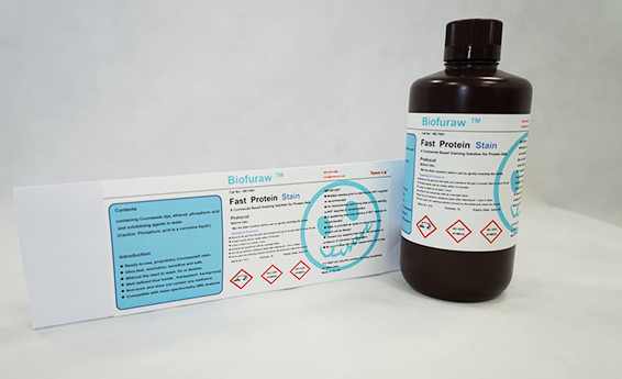 Biofuraw? 快速蛋白染液是以考馬斯亮藍為染料的染液,采用專利配方只染蛋白不染膠,告別常用脫色過程,簡單方便,大幅減少染膠時間。